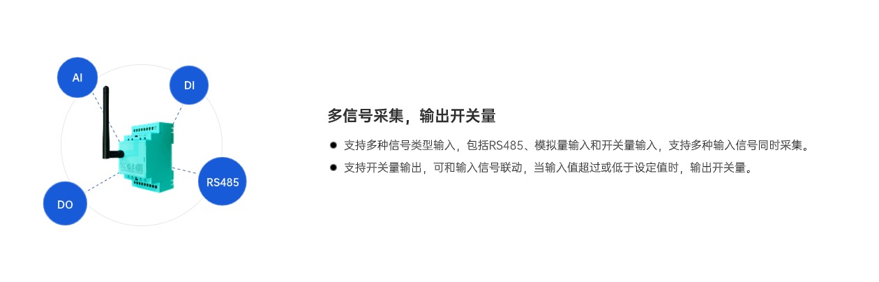 XL65無線采集模塊,是一款多功能、低功耗的數據采集設備,集成RS485通信口和豐富的I/0口(1AI、3DI、1DO),支持多種無線通信方式上傳采集的信號和數據??蛇x電池供電,適用于更多供電不便的場景。