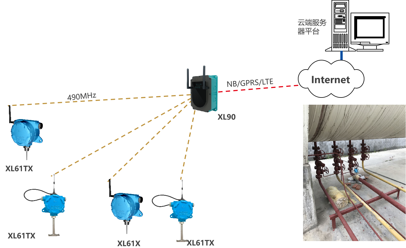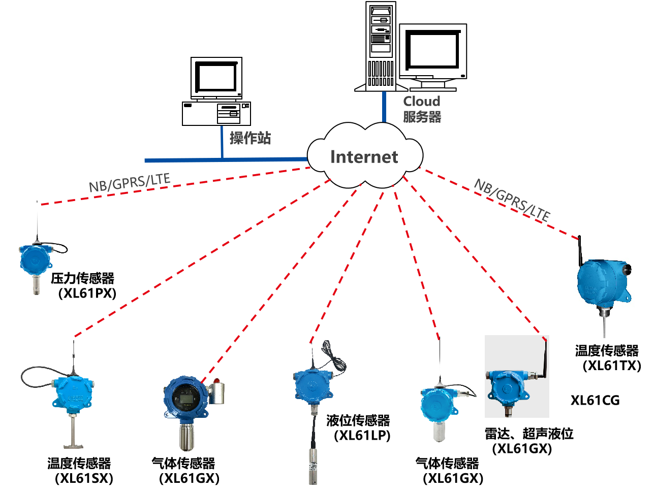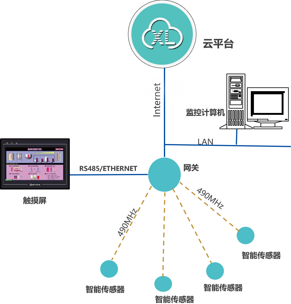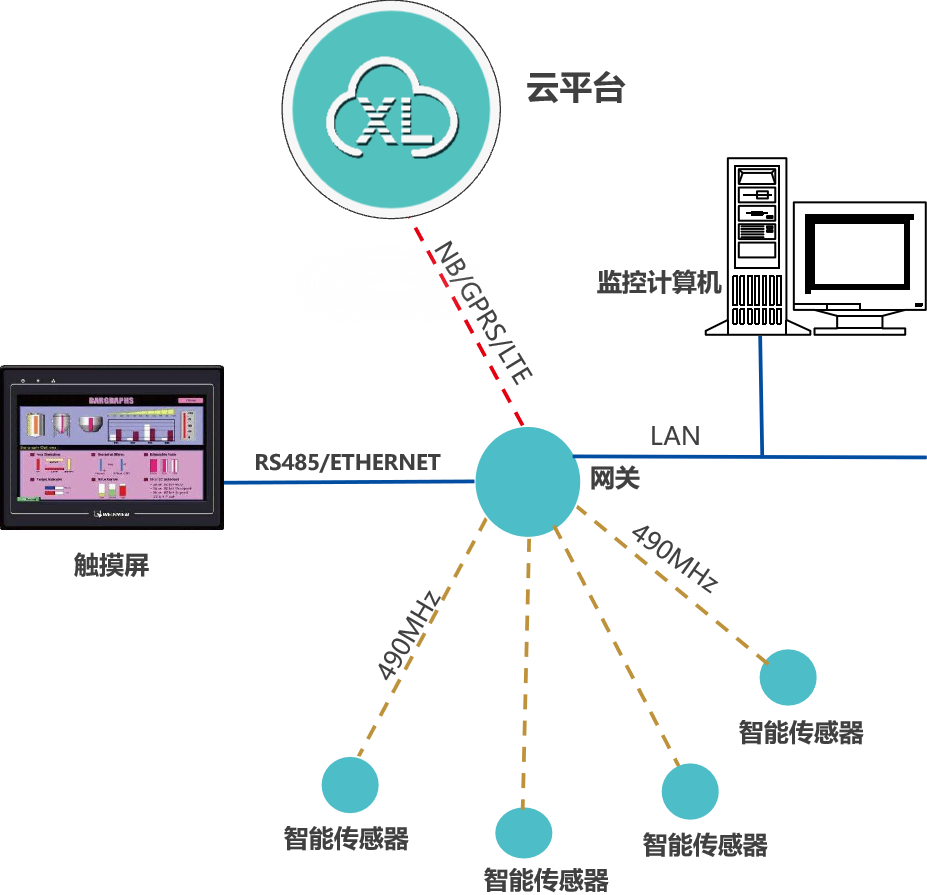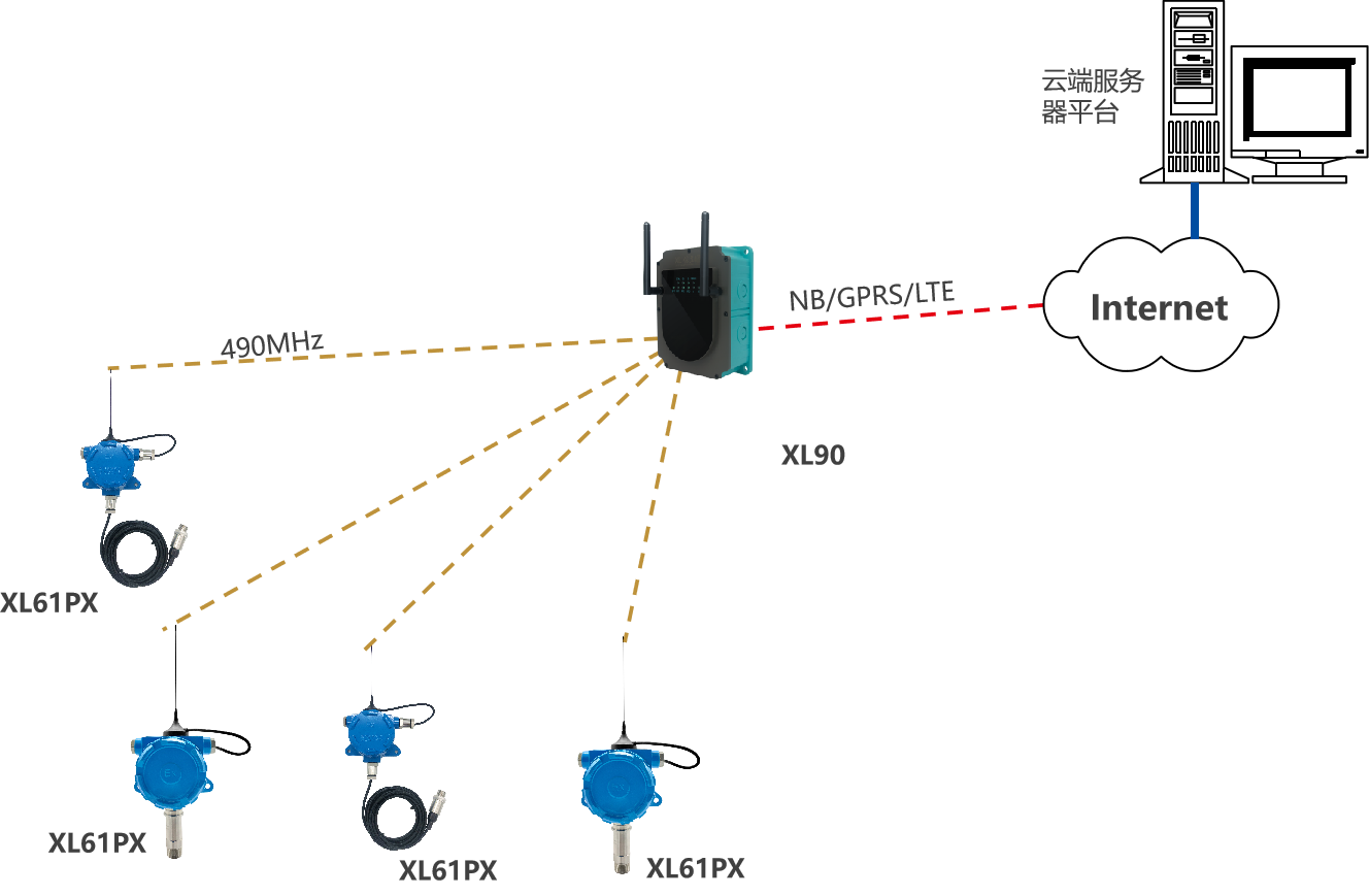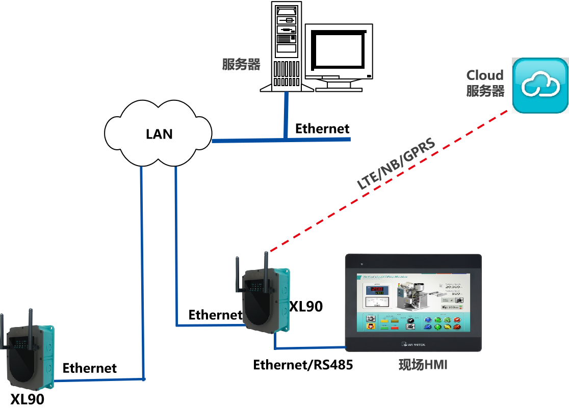XL90,將數(shù)據(jù)上傳給企業(yè)內(nèi)部的多個(gè)系統(tǒng)軟件平臺(tái);通過LTE(4g)/NB/GPRS將數(shù)據(jù)上傳至云服務(wù)器