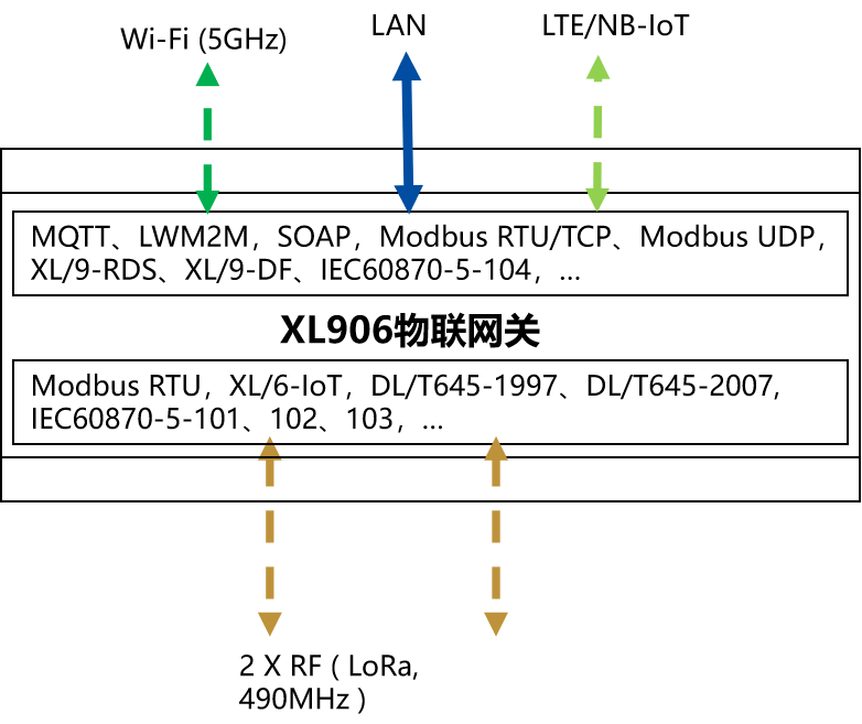 物聯(lián)網(wǎng)關(guān),通過以太網(wǎng),或NB/GPRS/LTE聯(lián)接云端,支持MQTT,LWM2M,XL/6-IoT協(xié)議,或用戶指定協(xié)議