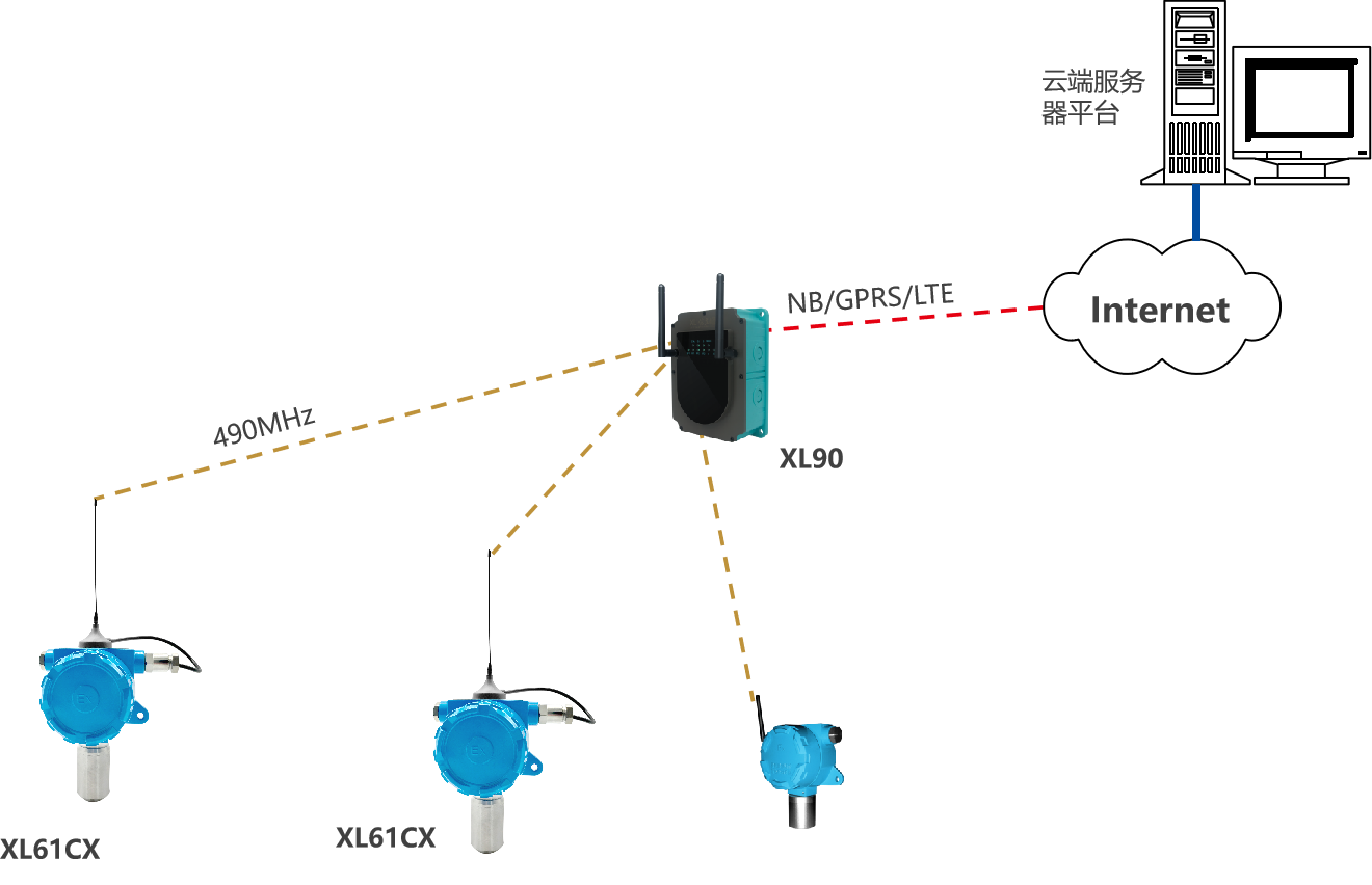 選擇XL90物聯(lián)網(wǎng)關(guān),無線讀取監(jiān)測(cè)點(diǎn)的數(shù)據(jù),進(jìn)行協(xié)議、通訊轉(zhuǎn)換后,推送至上層軟件平臺(tái)