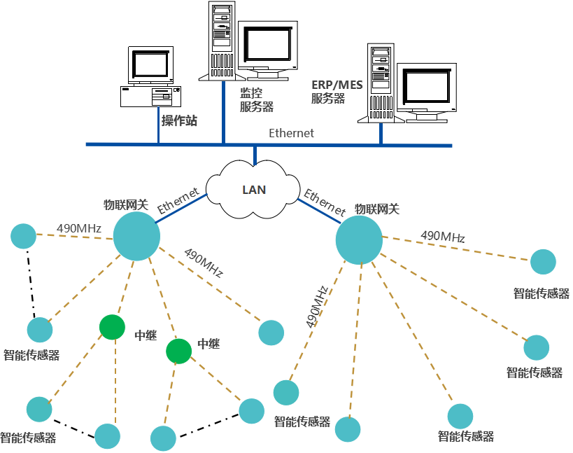 物聯網關通過無線方式,獲取智能傳感器的數據,通過局域網,將數據推送至監控服務器