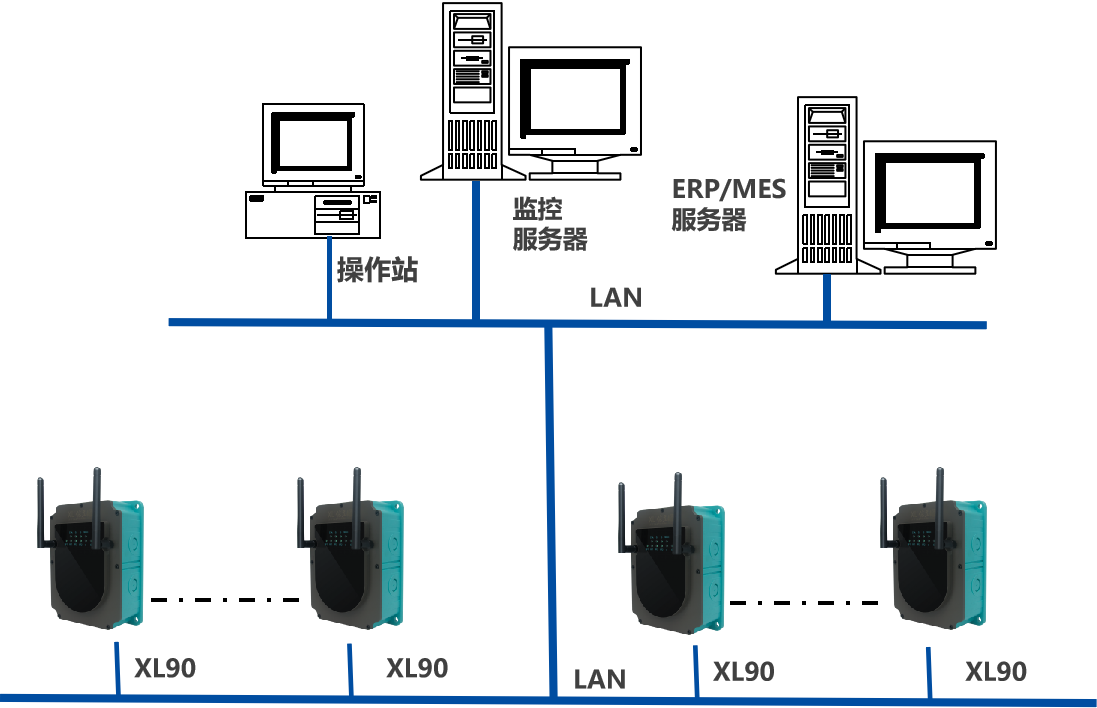 XL90將數據轉發給現場HMI;將數據上傳給企業內部的多個系統軟件平臺;通過LTE(4g)/NB/GPRS將數據上傳至云服務器