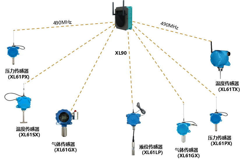 1臺XL90物聯網關,構建兩個獨立的LoRa通訊網絡,可接入64(理論上不受限制)臺智能傳感器