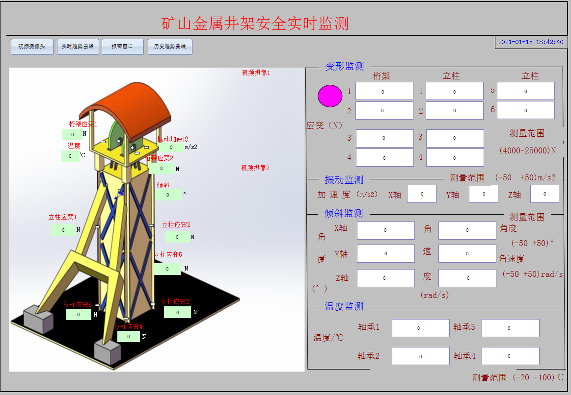 井架安全實時監(jiān)測系統(tǒng)主界面: