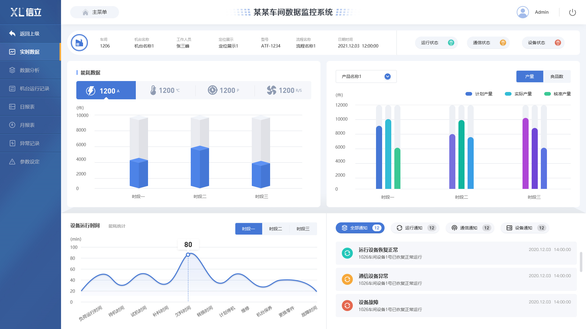 分析機器各狀態的占比時間,出現的頻次,計算分析操作人員的工作效率,生產計劃的優劣,數據可視化展示。