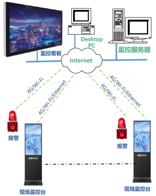 l 平臺系統(tǒng)可配置操作站、監(jiān)控看板、現(xiàn)場監(jiān)控臺、聲光報警器。監(jiān)控軟件按權(quán)限向操作站、監(jiān)控看板、現(xiàn)場監(jiān)控臺推送數(shù)據(jù)。異常情況驅(qū)動聲光報警器。操作站可遠(yuǎn)程復(fù)位聲光報警器、使能現(xiàn)場監(jiān)控點。