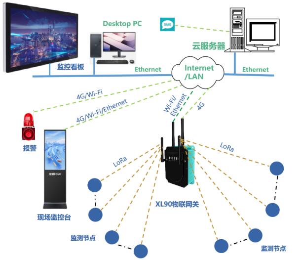 LoRa無線上傳溫度數(shù)據(jù),須選XL9X系列物聯(lián)網(wǎng)關(guān)作無線接收端,通過Ethernet、Wi-Fi、RS485,或4G通信方式,接入溫度監(jiān)控軟件平臺,支持Modbus RTU/TCP、MQTT、SOAP、寫數(shù)據(jù)庫等通信協(xié)議。 |