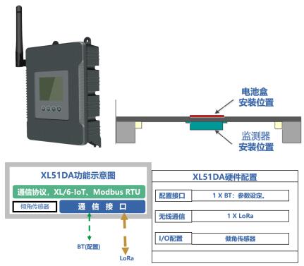l 選擇XL51DA無線傾角傳感器,檢測、判斷井蓋是否出現(xiàn)傾斜、移動。