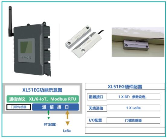 門開啟監(jiān)測:選擇低功耗無線門磁傳感器XL51EG實現(xiàn)。
