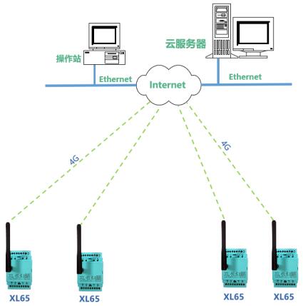 考慮到水下監(jiān)測的信號問題,溫度變送器選擇防水電纜通過RS485通信方式將數(shù)據(jù)傳輸?shù)?/span>XL65無線采集器;由于戶外偏遠,XL65無線采集器采用4G通信,不受距離限制,將數(shù)據(jù)直接上傳至云平臺。
