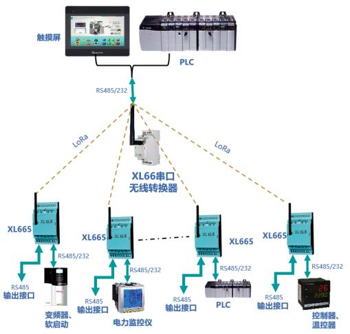 通過LoRa無線傳輸模塊輸出的數據,可上傳至XL90物聯網關接入監控軟件平臺,或通過XL66串口無線轉換器,與PLC、觸摸屏等通信。