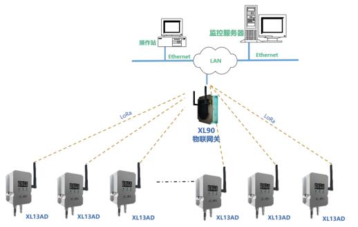 網(wǎng)絡層:XL13AD差壓傳感器通過LoRa無線傳輸數(shù)據(jù)至XL906物聯(lián)網(wǎng)關(guān)或XL97網(wǎng)關(guān)終端,網(wǎng)關(guān)可選Ethernet、Wi-Fi、4G等多種方式將差壓數(shù)據(jù)傳輸至監(jiān)控平臺。