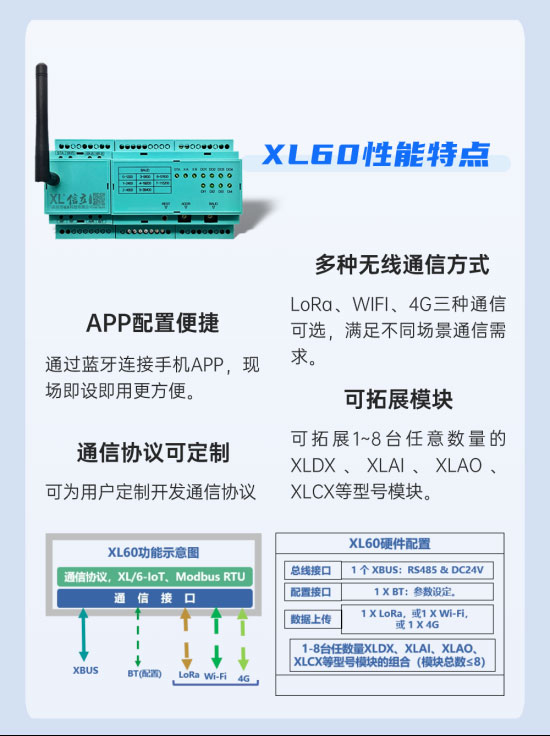 選擇 XL60 無(wú)線采集裝置 ,搭配 I/O 模塊,接收開關(guān)量信號(hào)和輸出開關(guān)量信號(hào)。